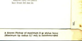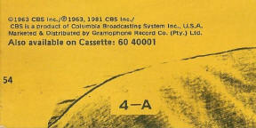 South African labels: a different typeface for the track listing, no stereo arrows logo