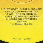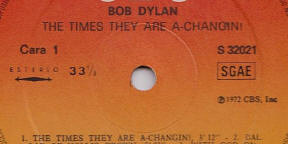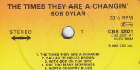 on the rear sleeve at bottom right, The Times They Are A-Changin'