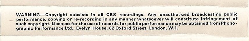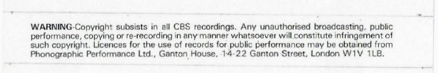 (1975 release - the "CBS" logo and "STEREO"/arrows logo are missing from