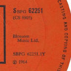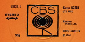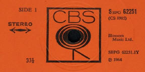 has orange/yellow CBS labels, with no matrix number on Side 1 and SBPG 62251 B4 stamped on