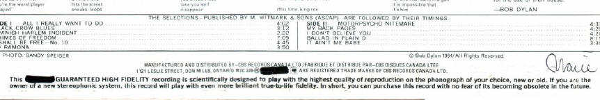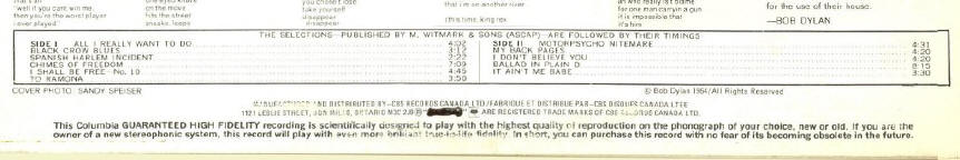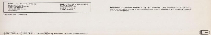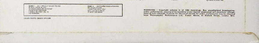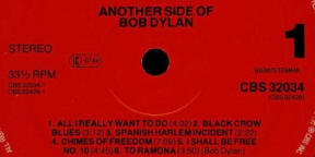 rear sleeve at bottom right, Another Side Of Bob Dylan