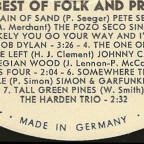 Thanks to Gord Pugh and Hans Seegers for information and scans. Thanks also to Gord Pugh for scanning the sleeve notes. Relating to Bob they say: "Bob Dylan is a fast-rising young man who has crossed and re-crossed the country, learning songs and writing them himself. Possessor of a compelling vocal style, Bob is heard to especial advantage on Freight Train Blues, Pretty Peggy-O and Corrina, Corrina." Confusingly, Bob is named as "Bobby" Dylan on the front sleeve and on the label!