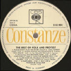 Various Artists - "Constanze: The Best Of Folk & Protest" - compilation stereo vinyl LP releases, CBS S 62 804 (West Germany), 1966: