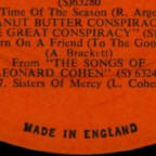 This was the first "sampler" album to be produced by CBS that was sold commercially in the UK as a general release (previous releases like the ones above had been limited editions). It was extremely successful, both in its own right and in terms of generating sales for the featured albums, all of which were newly released at the time. The front has a fabulous Victorian-style illustration of a "rock machine" by Milton Glaser! (For Milton Glaser's famous 1967 Dylan poster see Part 1). Bob's contribution is I'll Be Your Baby Tonight from John Wesley Harding. Other artists included are Leonard Cohen, Simon & Garfunkel, The Byrds, Blood, Sweat and Tears featuring Al Kooper, and The Electric Flag featuring Mike Bloomfield. The UK stereo release is housed in the mono PR 22 sleeve (although it has CBS stereo information in a text box at the bottom of the rear sleeve) with a white Stereo/arrows logo sticker. The UK rear sleeve has "GB" printed vertically at bottom right, as well as printer information from Ernest J. Day printed horizontally. The generic CBS UK paper inner sleeve has a cut-out for the record label and has the theme "The Sound Of Entertainment". Current CBS albums are illustrated on the front, including the 1967 UK version of Bob Dylan's Greatest Hits, and all Bob's UK albums are listed on the back amongst albums from others. The record has orange CBS labels with the "STEREO" logo to the left of the centre CBS logo. |