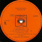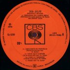 "This release was manufactured and distributed by Discophon of Barcelona on behalf of CBS (subsequent albums such as John Wesley Harding released in 1971 were made by CBS Spain in Madrid). The record has orange CBS labels and legal texts in Spanish, while the songs titles and the album title are just like the original UK and USA releases, and it has also the Johnny Cash poem on the rear sleeve. The rear sleeve has “PRINTED IN SPAIN” in the right lower corner and “DISCOPHON – Barcelona” at bottom centre. The left lower corner has the following text in Spanish: "CBS es la marca registrada de Columbia Broadcasting Systems, Inc., USA [CBS is the trade mark of Columbia Broadcasting Systems, Inc., USA]."