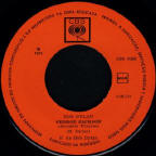 All the records had orange CBS labels. François Guillez has a promo copy of the first release record with a sticker in Portuguese and English on the A-side. The B-side is the same as the commercial release and it comes in a generic CBS sleeve.