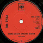 occurrence each of the rarities. All releases were in stereo. International releases with picture sleeves use photos from The Concert For Bangladesh, Madison Square Garden, New York, NY, 1 Aug 1971, also used on the cover of Bob Dylan's Greatest Hits Vol. 2. For the Apple release of the evening Bangladesh concert, see 1972. Both tracks are part of the 42 rarities included for download with the Aug 2006 Apple iTunes Bob Dylan Collection, see Online Performances (Other). The Acoustic version appeared on the 2013 2CD set Side Tracks, included with The Complete Album Collection Vol. One, see 2013. |