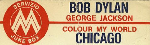 R-0463 Excerpt from so far unidentified Dylan track (The Dylan picture on the front of the disc is from the George Jackson single - R-0084, R-0085, see 1971.) |