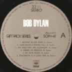 ![]() CBS Sugar PRG 9 (Italy) - front and Side 1 of LP1, photo from www.discogs.com (no Dylan) |