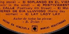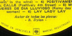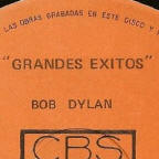 "Grandes Exitos De Bob Dylan [Bob Dylan's Big Hits]" - stereo vinyl LP, CBS CS-10.118 (Venezuela), 1972 (twice), re-released late 1970s: