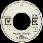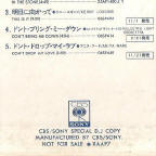 These promotional albums for DJs are compilations of A-sides of singles released by Columbia US with entries on the US Billboard charts. They were released in Japan to promote the equivalent Japanese releases. For this reason, Gotta Serve Somebody (track 5 on Side 1) is the 3:57 radio edit released in Japan as the A-side of the CBS/Sony 06SP 410 single above, not the full album version from Slow Train Coming (5:23). The other promo albums in this CBS/Sony DJ series had no Dylan involvement.