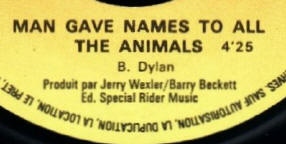 ![]() CBS 7954 (France) - detail of A-side, scan by Hans Seegers (paper label, variants 1A and 1B - "ANIMALS" on second line of song title) |