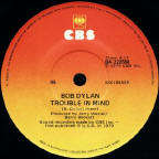 R-0150 Trouble In Mind - B-side of Brazilian CBS single - it is rumoured that this release had the full song (5:13) as opposed to the 4:17 edit (R-0149 above), although some dispute this Manuel García Jara has a white label copy of the Brazilian 7" single in a generic sleeve with the text "AMOSTRA INVENDÁVEL [SAMPLE NOT FOR SALE]" on the labels. This single appears to have the 4:17 edit of the B-side (R-0149), not R-0150. Scans required! This 5:13 version was finally released officially in Oct 2011 on the Sony Music Germany compilation Pure Dylan: An Intimate Look At Bob Dylan, see 2011. This song was released in slightly edited form (4:50) on Disc 3 of the 8CD+DVD set The Bootleg Series Vol. 13 - Trouble No More 1979-1981 (Deluxe Edition), 3 Nov 2017. R-0150 remains a rarity. |