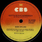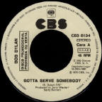 There was also a white label promo single with an insert with the lyrics of Gotta Serve Somebody translated in Spanish on the reverse.