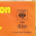 ![]() CBS 7828 (Italy) - front of promo copy with cut-out, scan by François Guillez |