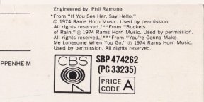![]() Columbia PC 33235 (USA) - detail of promo LP Side 1, scan by Hans Seegers ("SIDE 1" not in italics as first commercial release) |