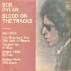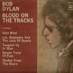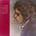 Original US stereo LP, Columbia PC 33235, 20 Jan 1975 The front picture is by Paul Till based on a photograph he took of Bob in Toronto in Jan 1974 (below left). Arie de Reus has a 10" x 8" print of the photo he bought from Paul Till. The first US (and all UK) pressings of the album had a rear sleeve with notes by famed New York journalist and author Pete Hamill surrounding a painting by David Oppenheim. Unfortunately these notes were based on and quoted lyrics from the original versions of the songs on the Blood On The Tracks acetates and test pressing, see 1974. Also the original New York musicians were credited, but not those from Minnesota. The sleeve notes were then removed and replaced by a new larger painting by David Oppenheim. The New York musician credits were also lost. However, to the great embarrassment of Columbia, Pete Hamill was subsequently awarded a Grammy for his sleeve notes! The original rear sleeve was then restored, but with white text because the original black text had been almost unreadable. The Minnesota musicians were never credited! Thanks to Rod MacBeath for information. Thanks to Simon Blokker for spotting that Dean Moriarty's name is misspelled "Deam Moriarty" on every rear sleeve that has the sleeve notes, even after they were restored. From Michael Krogsgaard's series of articles about "Bob Dylan's Recording Sessions", the Minnesota Dec 1974 musicians were: Greg Inhofer (keyboards), Bill Berg (drums), Chris Weber (guitar), Bill Peterson (bass), Peter Ostroushko (mandolin) and Kevin Odegard (guitar). The Minnesota sessions were produced by David Zimmerman (Bob's brother). Up to Sep 2003 the then current CD insert did not contain the sleeve notes, but they have now been restored in the booklet with the Sep 2003 hybrid SA-CD edition (see below). Blood On The Tracks was remastered by Columbia in 1997 but the remastered edition was never released. A remastered version of Buckets Of Rain, probably from that master, appeared on the Wonder Boys soundtrack album (see 2000) and the 2002 Moonlight Mile soundtrack album (see International Album Releases (Various Artists Compilations) 2002).Now, however, this title is one of the fifteen Dylan albums released in Sep 2003 as a hybrid CD/SA-CD. This is playable both in stereo on an ordinary CD player and in enhanced stereo on an SA-CD player or a DVD player that also plays SA-CDs (Sony's higher range models all do this). Blood On The Tracks is also available in 5.1 surround sound. Thanks to Bucks Burnett for the photo of a 2½ feet square US poster of Blood On The Tracks. Tracklisting: