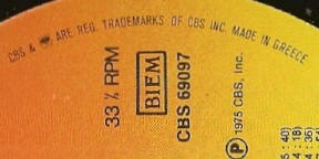 The records of the late 1970s releases both have orange/yellow CBS labels, although only the first mentions the Gramophone Record Co (Pty) Ltd - this text is missing on the second orange/yellow labels. The first late 1970s copy shown has matrix numbers: Side 1 - ASF 1837-AL33235, Side 2 - ASF 1837-BL33235.