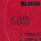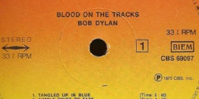 "Blood On The Tracks" - stereo vinyl test pressing, Columbia (no catalogue number) (USA), Jan 1975: