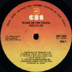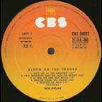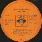 "Blood On The Tracks" - stereo vinyl LP releases, CBS ASF 1837 (Rhodesia), 1975, re-released late 1970s; CBS ASF 1837 (Zimbabwe), mid-1980s: