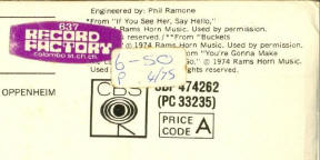 Columbia PC 33235 (USA) - detail of replacement US album rear sleeve with demonstration stamp, scan by Gerd Rundel |