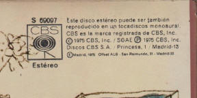 Both the sleeve and record were made in Argentina. The records have orange/yellow Discos CBS labels with song titles in English and Spanish. The records of both copies shown have matrix numbers: Side 1 - AL 33235, Side 2 - BL 33235 (same as the US catalogue number). Gerd has also found a demonstration copy on eBay with pre-printed Discos CBS label with typewritten text on Side 1 only and stickers also with "DISCO PARA DEMOSTRACION VENTA PROHIBIDA [DEMONSTRATION RECORD SALE PROHIBITED]" on both sides.