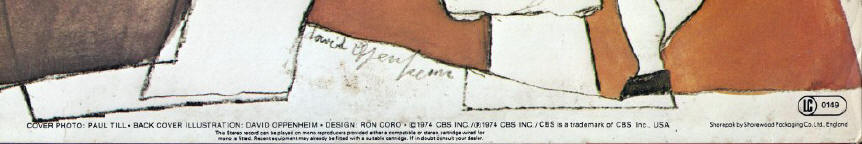 ![]() Columbia PC 33235 (USA) - replacement US album rear sleeve, a second painting by David Oppenheim and just track titles, scan by Tom Ruddock for Jim Kenney |
