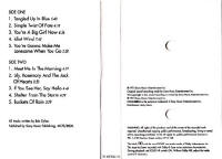 These stereo cassette releases have a smaller single-sided insert with no information other than the track titles (the reverse is blank). All songs are credited to Warner Bros. The three cassettes shown have the same text, but the first cassette is off-white with blue text, the second two are transparent grey with white text, there are no paper labels. CBS PC 4564 was also released as part of a two cassette set, CBS NPC 9, see International Album Releases (Multi-Packs) 1970s.