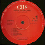 The later record has red CBS/Sony labels and the copy shown has handwritten matrix numbers: Side 1 - PC 33235A, Side 2 - PC 33235B. The printed song timings are different from those on the US release (see above). This record label has the same design as the Singapore/Malaysia release of Saved. The matrix numbers are the same as the previous release. As far as I can see the sleeves are identical.