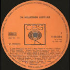 Vol. 2 (CBS S 66238 above) and Vol. 5 were planned to be released in Spain as a 2LP set with title 24 Million Sellers Vol. 1 (CBS S 66238), but the release was cancelled. A few copies of Vol. 2 had already been pressed, so the "CBS S 66238" labels above were corrected with a black marker pen to "CBS S 64031". Copies of Vol. 5 were also changed in this way to "CBS S 65214", but I don't yet have an example.