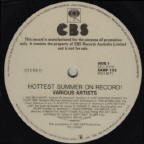 Various Artists - "Hottest Summer On Record" - promo compilation stereo vinyl release, CBS SAMP 103 (Australia), 1985: