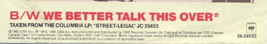 My Love?)/We Better Talk This Over" - 7" promo and commercial singles, Columbia