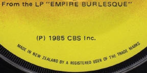 "Empire Burlesque Excerpts" - promo cassette, Columbia DAL/DBL 40110 (USA), May 1985: