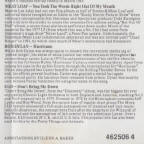 Bob's contribution is a unique 5:40 edit of Hurricane from Desire as track 3. Because this is a rarity, full details are in 1988. Thanks to Stuart Moore for information and scans. |