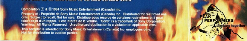 Various Artists - "Sony Music Sampler" - promo compilation CD, Sony Music SMPD 035 (Canada), Nov 1994: