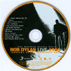 inserts look as if they're from a PC printer. Harold Lepidus informs me that early promo copies start with a stage announcement but lter promo copies as below and the commercial release do not. Because this is a rarity, these early copies, which have no artwork and are on CD-Rs, are also listed in 2004. Various song introductions which occur throughout the performance and Bob's introduction of Joan Baez are separate CD tracks here but they're merged with the songs on the later promos and the commercial release. The stage announcement (followed by applause and a short silence) is: "Before we begin, I have one announcement to make. (Applause.) It’s two fold. There’s no smoking in the house, and absolutely no pictures, please!" Thanks to Jean-Pol Hiernaux for finding these on eBay. |