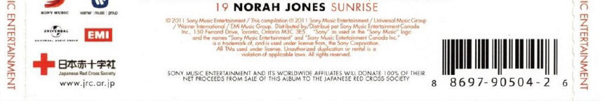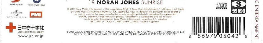 Various Artists - "Songs For Japan" - charity compilation 2CD set, Sony Music 88697 90504 2 (USA/Canada), 5 Apr 2011; Sony Music Entertainment 88697905042 (Europe/Australia)/Sony Music Entertainment 88697 90504 2 (Hong Kong)/Sony Music Entertainment 88697 90504-2 (Argentina), 4 Apr 2011: