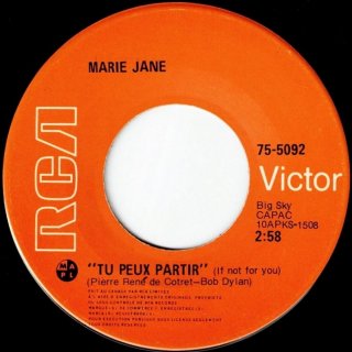 French translation of IF NOT FOR YOU from "New Morning", with lyrics by Pierre-René de Cotret. Recorded by French Canadian singer Marie Jeanne or Marie Jane on a 1971 RCA Victor single, PRO.1601 (promo) or 75-5092 (commercial) - promo scan required! Thanks to Tim Dunn and Jack from Canada for information and scan |