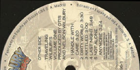![]() Wilbury Records/Concord Bicycle CRE-39517-01/666999396854 (USA) - detail of Side 2, scan by Jack from Canada ("1988" added to production credits) |