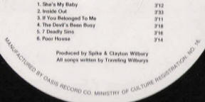 Wilbury Records/Warner Bros 1-26324 (USA) - detail of inner sleeve
