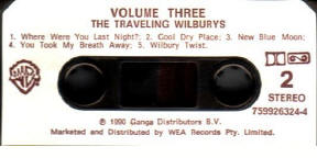 "Traveling Wilburys Volume Three" - stereo cassette releases: Warner Bros/Wilbury Records 759926234-4 (Australia); Warner Bros/Wilbury Records 759926234-4 (New Zealand), 1990: