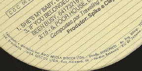 On the 1988 Zimbabwean Traveling Wilburys Volume One album the South African Tusk Music Company information is obscured, on this 1990 album it isn't.