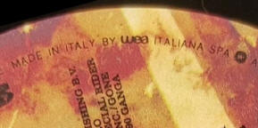 The copy of the record shown has handwritten matrix numbers: Side 1 - 1-26324-A SR-1, Side 2 - 1-26324-B SR-2, plus the handwritten symbol of "R" and "C" inside an "S", denoting the record was mastered by Specialty Records Corporation, Olyphant, PA, as shown above for the US vinyl release. These matrix numbers are the same as the US record, which implies US masters were used in Italy, whereas the German records were mastered in Alsdorf with stamped matrix numbers without the "SRC" symbol.